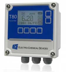 The ECD Universal Transmitter – Model T80 Series is a single or dual channel transmitter designed for the continuous measurement of pH, ORP, pION, Dissolved Oxygen, Turbidity, Conductivity or Resistivity in a general purpose industrial environment. The Model T80 transmitter digitally communicates with any ECD Model S80 Intelligent Sensor, automatically configuring the transmitter’s menus and display screens to the measured parameter.