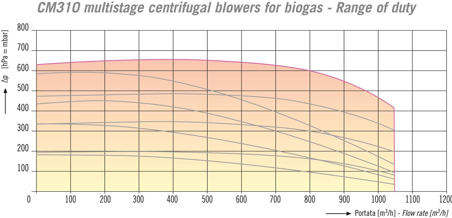CM310 multistage centrifugal blowers for biogas - Range of duty